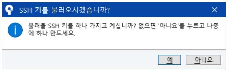 SSH키가 없으니 아니오를 누른다.